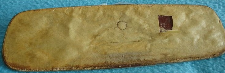 Grund genug also, sich an die Restaurierung des Spiegels zu machen. Die Herausnahme des Glases gelang mit Hilfe zweier Messer und etwas Mut. Das Glas findet man dann rückwärtig mit Papier überzogen. Überraschenderweise ist das Glas keilförmig geschliffen. So ist es im oberen Teil dicker als im unteren.